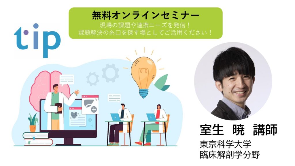 東京科学大学 tipより無料オンラインセミナー(tip BBセミナー)をご案内します。Science Tokyoおよびtip会員(産学官)発の現場の課題や連携ニーズを発信しますので、課題解決の糸口を探す場としてご活用ください!
