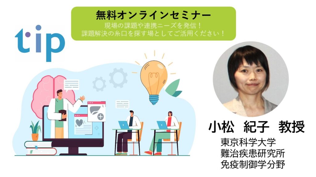 東京科学大学 tipより無料オンラインセミナー(tip BBセミナー)をご案内します。Science Tokyoおよびtip会員(産学官)発の現場の課題や連携ニーズを発信しますので、課題解決の糸口を探す場としてご活用ください!