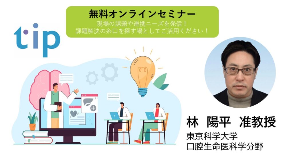 東京科学大学 tipより無料オンラインセミナー(tip BBセミナー)をご案内します。Science Tokyoおよびtip会員(産学官)発の現場の課題や連携ニーズを発信しますので、課題解決の糸口を探す場としてご活用ください!
