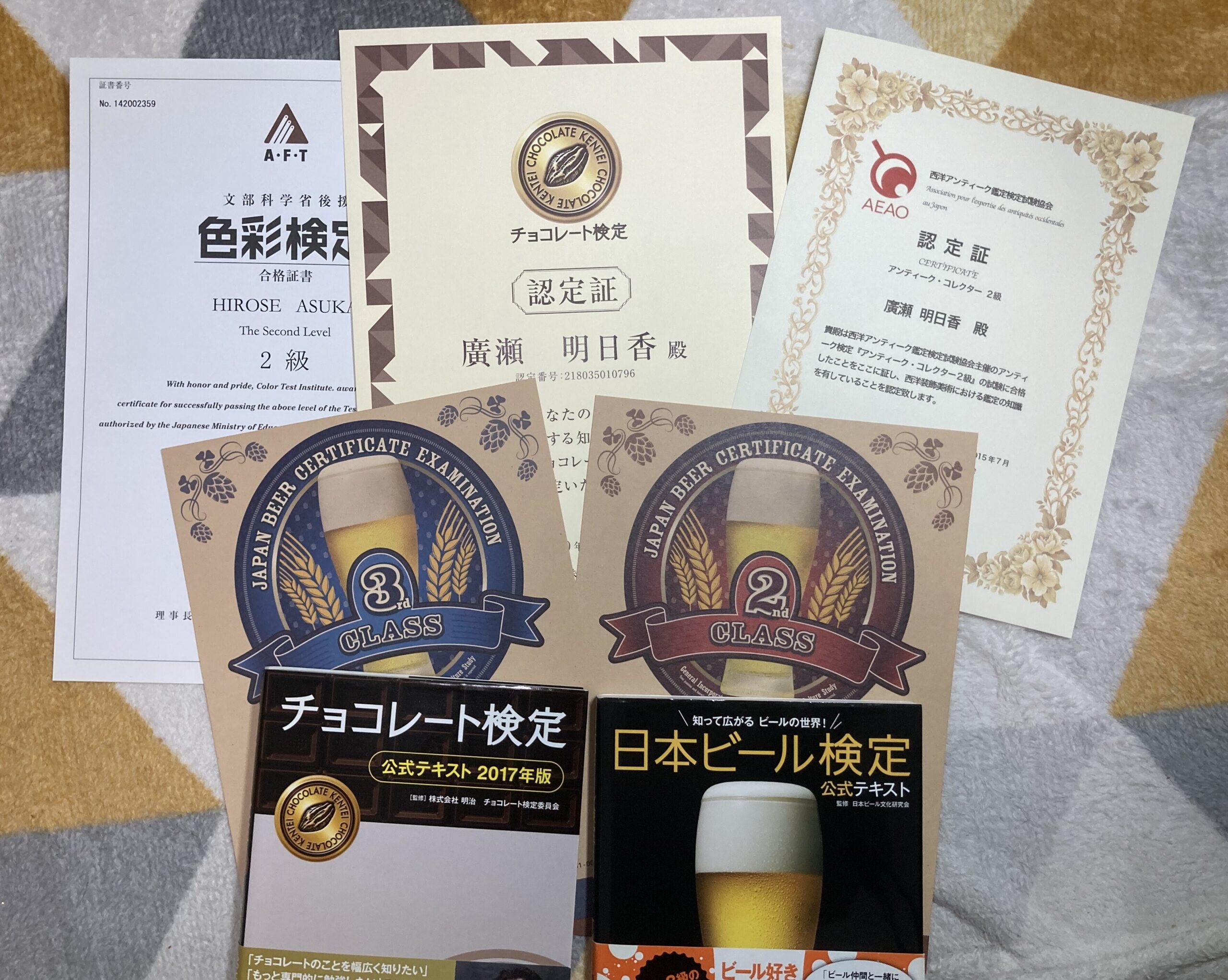 - 世界検定や美術検定、色彩検定、ビール検定、チョコレート検定など隙間時間を見つけてはコツコツ勉強して資格を取得するのが私の趣味。もしかすると資格マニアなのかもしれません(笑)。6才、4才、2才と3人のわんぱく3兄弟を育てながら、次は境港妖怪検定を受験する予定です。上の6才の子が妖怪好きなので、クイズを出し合ったりしながら合格を目指すつもりです。お酒を嗜むのも好きなので、ビール検定で学んだ知識を活かして岐阜県南東部に位置する東濃地方でクラフトビール巡りを満喫するのが夢ですね。